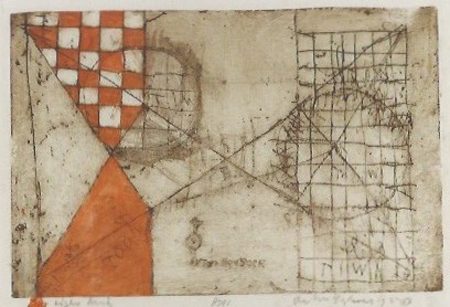 Puis les lits-stèles, soixante dix neuf au total, je ne me souviens plus du nombre exact. Chaque gravure, chaque grand blessé de guerre ayant son drap d’hôpital reprisé ou pas, ou peut-être bien son futur linceul ? Têtes et casques éclatés, éclats d’obus. Eclats de gravure et de sang sur les murs de l’église. Traces de bleu, ce bleu infâme et si voyant de l’uniforme des poilus. Traces de sang sur le tissu. Paroles de poilus, lettres de poilus en chine collé. Il n’est pas aisé de décrire le sentiment de détresse humaine, il m’est revenu ensuite que j’avais ressenti des émotions semblables lorsque j’avais vu les originaux d’Otto Dix à l’Historial de Péronne ainsi que Les désastres de la guerre à Clermont-Ferrand, il y a quelques années. Le chant (champ ?) de l’atelier où l’on entend le bruit intense de la pointe sèche comme une rage d’écrire en gravure ce moment d’histoire. Les têtes bleues, gueules cassées, raccommodées ou pas. Le livre « Du coton dans les oreilles » que je consulte à nouveau avec grand plaisir. Les portraits éclatés d’Apollinaire imprimés, en portfolio 9 au carré, les neuf matrices étant celles exposées dans l’impasse de la guerre. Enfin, le grand corps couché, face au chœur, face aux portraits de poilus, pointes sèches et morsures éclatées, zébrées de bleu et de sang.