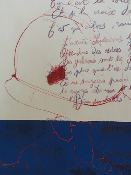 Casque de Guillaume Apollinaire, pointe sèche, technique mixte, détail (photo Dominique Crognier)