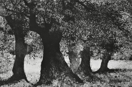 Abderrahmane Mada, « Le bruissement des oliviers », aquatinte