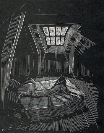 Yves Marchaux, « La fenêtre », taille d’épargne au burin sur cuivre