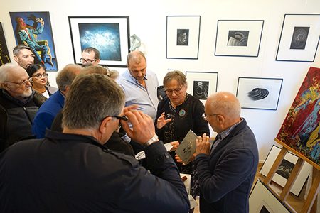 Et la visite de se poursuivre, dans une ambiance ouatée, à la rencontre de chefs d’œuvres de la gravure passée. L’enchantement accompagne la découverte du talent des artistes de l’époque, tels Girard Audran, Gérard Edelinck, Sébastien Lecler, Claude Mellan, Israël Sylvestre, et nombre d’autres graveurs (il est difficile de tous les nommer), qualifiés de virtuoses de la gravure, libérés statutairement en 1660 des contraintes du contexte artisanal exclusivement corporatif, par l’Édit de Saint-Jean de Luz (un 26 mai, date retenue pour la Fête nationale de l’estampe lancée en 2013 par Manifestampe) et qui participèrent au XVIIe siècle à l’élaboration du « Cabinet du Roi », une réalisation graphique, réunies en 23 volumes, de près de 1000 planches (crées entre 1665 et 1683), mettant en lumière ce qui participa à la grandeur de Louis XIV : les faits d’arme, les fêtes, les collections artistiques, les grandes réalisations architecturales et monumentales, les avancées scientifiques…