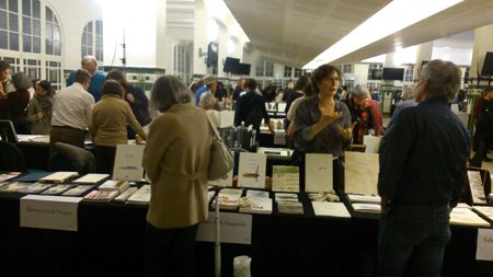 Quatre-vingt deux éditeurs et ateliers se pressaient donc en ce week-end de novembre 2019, dans le grand réfectoire du Palais de la femme de l’Armée du salut, sis rue de Charonne, pour accueillir un public nombreux composé de bibliophiles, de bibliothécaires – auxquels ce salon s’adresse en cœur de cible – et d’autres : artistes, amateurs d’art ou simples curieux qui venaient admirer ou acquérir toutes ces merveilles. Devant tant d’abondance (si l’on compte, au minimum, une dizaine de titres par exposant, il y avait sans doute plus d’un millier d’ouvrages à regarder et à compulser….), ce public avait donc l’embarras du choix, dans un régal des yeux et de l’imagination, accompagné toujours par un dialogue fructueux et chaleureux entre l’éditeur ou l’artiste exposant.