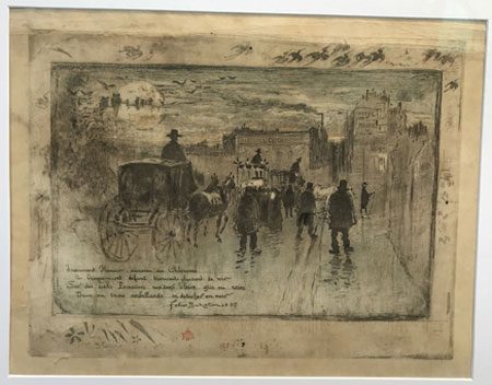 Adolph Gottlieb a gravé tout au long de sa carrière. Il se servait de l’eau-forte et de l’aquatinte pour élaborer le vocabulaire de pictogrammes qui lui est propre. Il travaillait seul dans son atelier. « Il utilisait la gravure comme un moyen pour travailler ses images. Il avait l’habitude d’esquisser une idée sur une plaque, d’imprimer une ou deux épreuves, puis de retravailler la plaque pour retravailler l’image » (traduction J.-M. Marandin). La gravure appartient à la phase de mise au point de l’image.