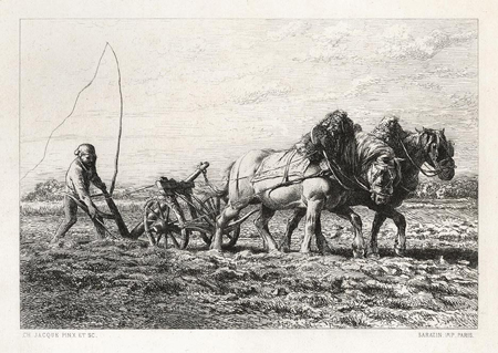 “Le Labourage” – eau-forte et burin (1864) de Charles Jacque