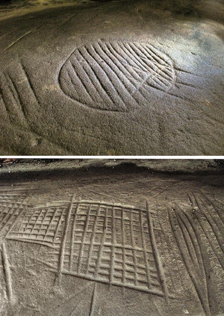 Gravures rupestres de l’abri aux orchidées (Cl. Maïté Robin)