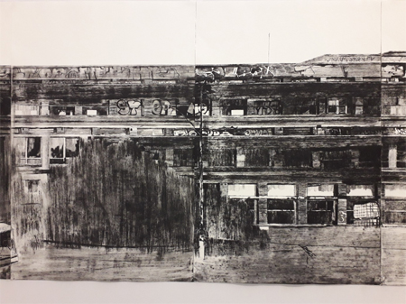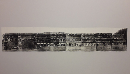 Le jury n’ayant pu se mettre d’accord sur un nom seulement, celui de Roman Couchard (né à Verviers en 1994) s’est imposé au moins comme second, avec une très grande estampe en plusieurs feuilles (956 x 5670 mm) gravée à la pointe sèche dans le plexiglas en 2018, montrant un immense bâtiment désaffecté, intitulée Preventorium.