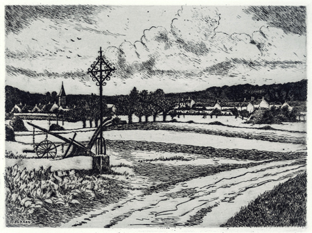 « Bourron » John Postle Heseltine (septembre 1894) eau-forte – 19,8×26,7 cm Recueil « Fontainebleau et ses environs »