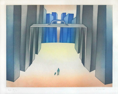 Deux espaces étaient dédiés à l’artiste, un troisième étant consacré à un ensemble de onze planches sur l’historique de la gravure, de son lointain passé à aujourd’hui, le temps présent s’exprimant de surcroit au travers de quelques tailles d’épargne à la gouge sur le Jazz dues à Stéphane Lalou, dernier graveur de Folon, ainsi que de portraits d’écrivains par Pierre Colombier, gravés dans une liberté technique plurielle très personnelle, cela en correspondance avec leurs écrits.