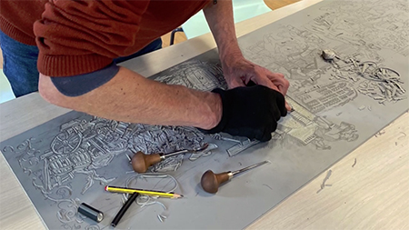 Carton gravé sur papier de Dominique Moindraut (Cl. Michel Deroide)