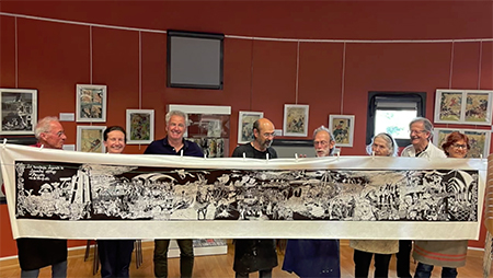 Merci aux artistes associés : Jacques Clauzel, Joelle Dumont, Dominique Moindraut, Anne Paulus et Edith Schmit qui y ont su partager avec Pascale Simonet cette belle aventure présentée par l’association « Terre d’estampes » dans le cadre de l’événement annuel Fête de l’estampe. Leur travail, plus d’une cinquantaine d’œuvres sur papier, encadrées, représentant certaines des techniques d’impression particulièrement utilisées par Pascale Simonet (carton gravé, estampages et litho polyester), auxquelles il faut ajouter huit panneaux géants de plus de deux mètres de hauteur, des livres et des pièces en céramique… du beau travail !.