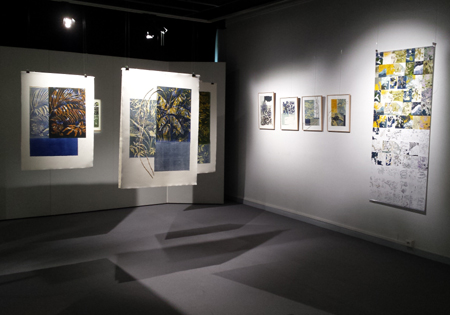 Pour la troisième fois, grâce à Marie-Laure Letellier, responsable des expositions de cette commune des Yvelines, l’estampe est à l’honneur dans les vastes salles de la mairie de La Celle Saint-Cloud. Les deux commissaires de la manifestation, Isabelle Béraut et Pascale Simonet, ont voulu montrer cette fois-ci que l’estampe pouvait être, entre autres, un des éléments d’une œuvre. Elles illustrent ainsi une tendance partagée par une jeune génération de créateurs qui usent des qualités expressives de l’estampe comme d’un moment ou d’un élément d’un parcours artistique pluridisciplinaire et plus polymorphe. Ainsi une place importante dans cette exposition est-elle prise par des installations ou des mises en scène dans les travaux proposés par treize artistes. Ici l’artiste stampassin – et c’est de propos délibéré – passe outre les canons des traditions stampassines et cherche à capter l’air du temps. Ce faisant, il sacrifie quelquefois aux modes du moment. Cependant la rigueur et la qualité des démarches ainsi offertes aux regards du public soulignent leur authenticité et méritent donc une contemplation attentive et silencieuse.