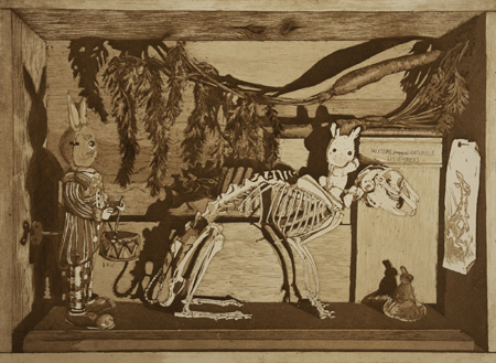 Valérie Guérin, amoureuse du trait et des contrastes entre le noir et le blanc, à la recherche de “Mimétisme pictural” et qui s’est laissée séduire par la tendresse de la linogravure, en dialogue sensuel de la gouge et de la matière.