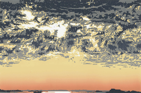 « Nuages et nuées IX » linogravure polychrome (Cl. Éric Durant)