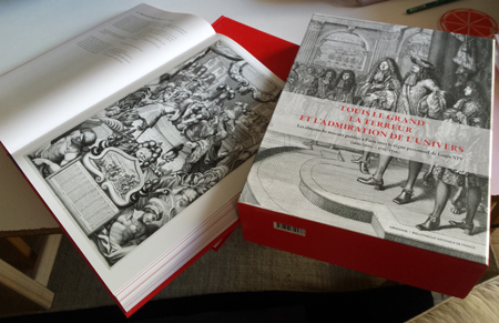Avoir eu la chance de compulser ce pesant ouvrage – six kilogrammes coffret d’emboîtage compris – a ravivé la mémoire de ma jeunesse. Celle où sous la férule de maîtres sévères et bienveillants nous étudiions les classiques. Notre langue y était apprise et leur lecture faisait taire les turbulents collégiens que nous étions alors. On analysait chez Racine les complications des sentiments amoureux dans des alexandrins – césure à l‘hémistiche – bien balancés qui transcrivaient leurs tourments. Les embarras de Paris chez Boileau étaient peu de chose à qui connaît maintenant ceux d’aujourd’hui. Aux cadences variées de La Fontaine se déduisait la morale de l’histoire et sur les tréteaux de Molière les galopins apprenaient dans leur naïveté que l’on parlait en prose quotidiennement. Le règne de Louis XIV achevait presque le pré carré de ce qui deviendra, un siècle plus tard, une nation et dont les fortifications de Vauban suscitent toujours de fortes émotions paysagères, maritime à Saint-Martin de Ré ou plus grandiose à Mont-Dauphin où son vaisseau de pierres croise encore sa proue sur la plaine alluviale entre le Guil et la Durance. Ce siècle, comme l’a si bien nommé Voltaire, fut guerrier et le présent ouvrage, qui plonge dans l’imaginaire collectif de l’époque, le rappelle dans son titre emprunté à l’un des almanachs qu’il décrit : « Louis le grand, la terreur et l’admiration de l’Univers ».