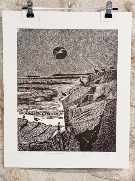 Xylogravure à matrice perdue 2020 « Danger à Coliumo » 1/3