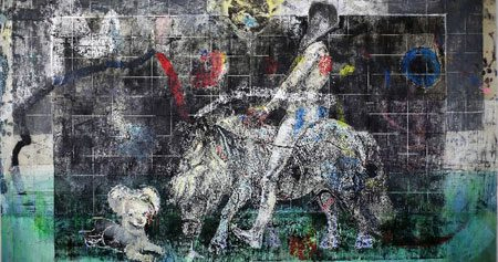 Le créateur contemporain pourrait arrêter là son dessein. Il exige plus. Il veut outrepasser le seuil de cet apprentissage. Il veut être moderne et s’ouvrir sur le temps qu’on respire. Il veut être moderne car dans le choix et l’agencement des matières et des formes, qu’il a appris à manipuler de toutes les façons, il ne peut pas ne pas continuer d’émouvoir en exprimant ce qu’il ressent du monde où il s’immerge. Cependant maintenant, ses choix et ses agencements sont l’unique truchement de l’émotion qu’il tente d’exprimer tant les sujets imposés de l’art d’autrefois – qui induisaient par leur présence même une suggestion inconsciente de l’autre – ont disparu de nos mémoires vives. Dans ses exigences formelles, il ne lui suffit plus de ressasser les anciennes recettes. Il doit se méfier des secrets d’écoles, se garder des tics d’ateliers, des poncifs de salon et de l’imitation. Il ne peut plus imiter tels quels les figures, les corps ni les paysages – il les transpose ou les suggère seulement – ni reproduire les styles d’antan et il ajoute souvent aux motifs de ceux-ci ceux puisés dans son seul imaginaire. Toutefois, pour transmettre l’émotion qu’il se prévaut de servir, il doit à tout moment redéfinir ses choix, réviser son expression et repolir ses formes. En un mot, les imaginer en les réinventant et, par un mauvais jeu de mots, les mettre au vent, les mettre à l’air, sens dessus dessous et cul par-dessus tête, pour ne conserver dans son van que le grain des choses et des gens débarrassé des contraintes de la copie fidèle et séparé des manières fripées que d’autres avant lui avaient déjà trop usées.