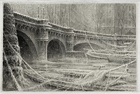« Les flocons » Pointe sèche sur acier (1990) 7,8 x 12 cm (Cl Clairis)