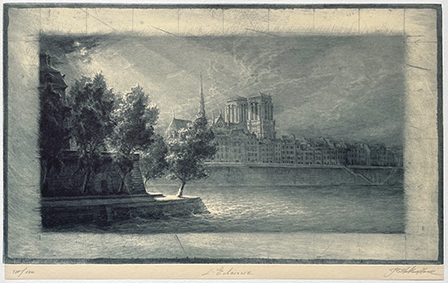 Cela dit, parcourir ce catalogue, est aussi pour le lecteur un voyage extraordinaire, au fil de « vedute » inspirées, gravées sur acier (une seule sur cuivre) ou sur des matériaux novateurs comme le plexiglas ou le rhénalon. Nous voici transportés de Paris, avec la Seine et ses quais, à Venise et Rome, dans une découverte magnifiée par le jeu des lumières et l’atmosphère de leur état chromatique de l’instant, par des traductions en clair-obscur ; ou nous voilà plongés dans des évocations réalistes, parfois même dystopiques, mais grandioses, générées par le passé d’architecte de l’auteur. Au final, au cours de l’impression, certains papiers ou japon appliqués y ajoutent leur propre dominante lumineuse.