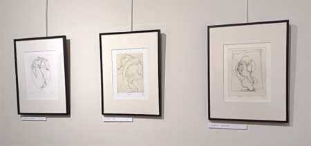 Ses sujets naissent, semble-t-il, au moment même de l’incision. Personnages, animaux — souvent des chevaux ou des chiens — viennent naturellement sous sa lame, efflanqués souvent, inachevés parfois, s’entremêlant à de curieuses mécaniques qui tiennent du robot. Mais ce sont des images qui se regardent de près, où, sous une apparence purement linéaire, de temps en temps à la limite du style nouille, se découvrent des bizarreries qui poussent à les regarder encore : que viennent faire cette fourchette et ce couteau dans l’« Essai pour Icare » ? La scie à métaux dans « Olibrius » se comprend davantage, puisqu’on est un peu dans la ferraille, et de toute façon ces images nous proposent le plaisir de l’interrogation renouvelée.