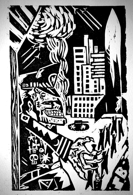Sergio Birga, Le Technocrate, linogravure, 1961, 190 x 120 mm
